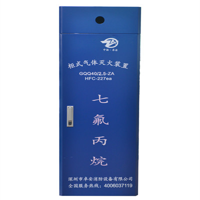 柜式滅火裝置也稱為無管網滅火系統、預制滅火系統,由滅火劑儲瓶、容器閥、驅動器、高壓軟管、壓力信號器、噴嘴、柜體等組成,不需安裝滅火劑輸送管道,不需設置專用的儲瓶間。裝置設置在防護區內,當火災發生時,直接向防護區噴射滅火劑,滅火劑無管路損失,滅火速度更快、效率更高。裝置具有自動、手動和機械應急操作三種啟動方式。